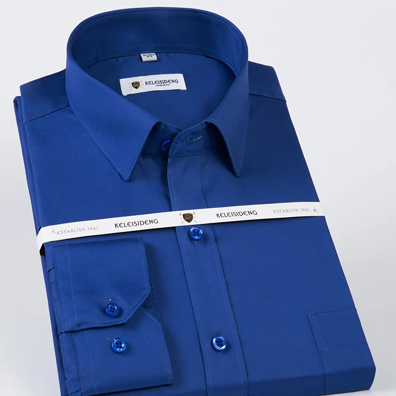 Special Offer Męska bawełniana klasyczna nieżelazna jednolita sukienka koszula pojedyncza naszyta kieszeń z długim rękawem regularny krój męskie formalne biznesowe koszule na przyjęcia towarzyskie Discount 35% Today!