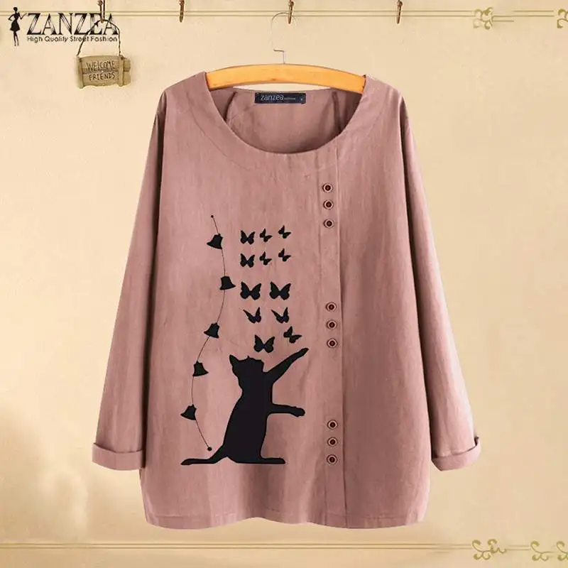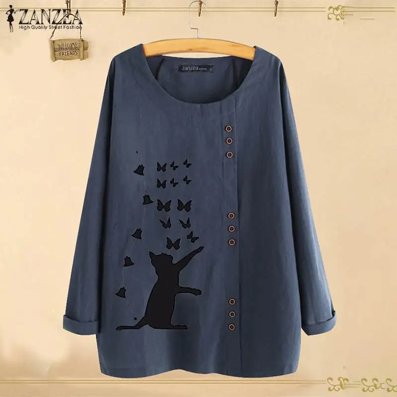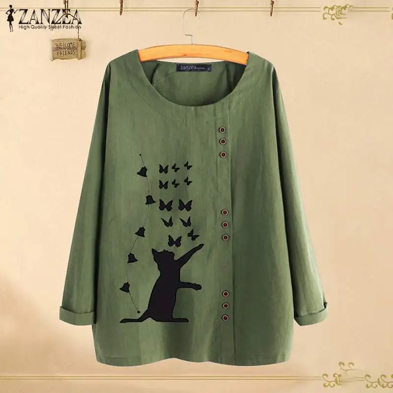 Special Offer Elegancki kot drukowane topy kobiety jesień bluzka 2019 ZANZEA na co dzień z długim rękawem shirty kobiet O Neck Blusas Plus rozmiar tunika S 5XL Discount 40% Today!