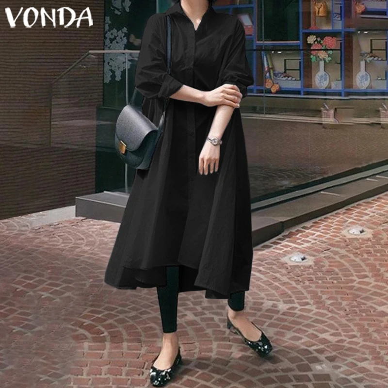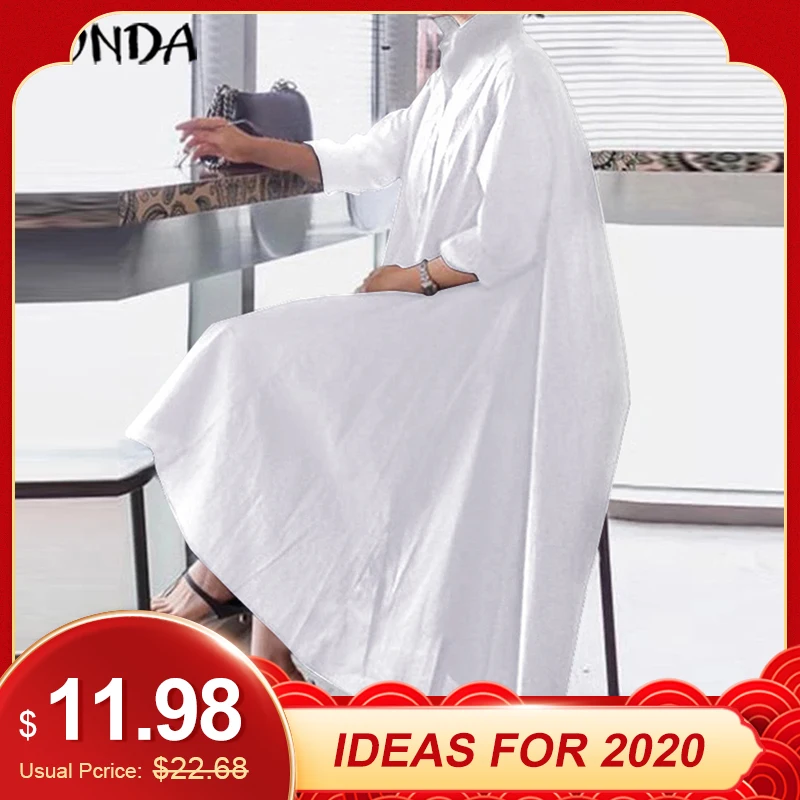 Special Offer VONDA sukienka asymetryczna damska seksowna puchowa obroża biała sukienka biurowa, damska Sundress Casual Loose Vestido Plus Size Discount 45% Today!