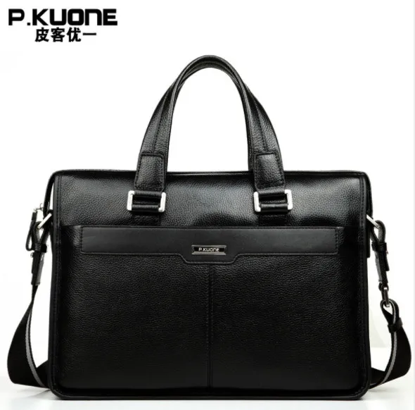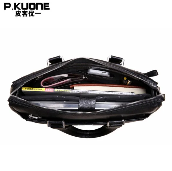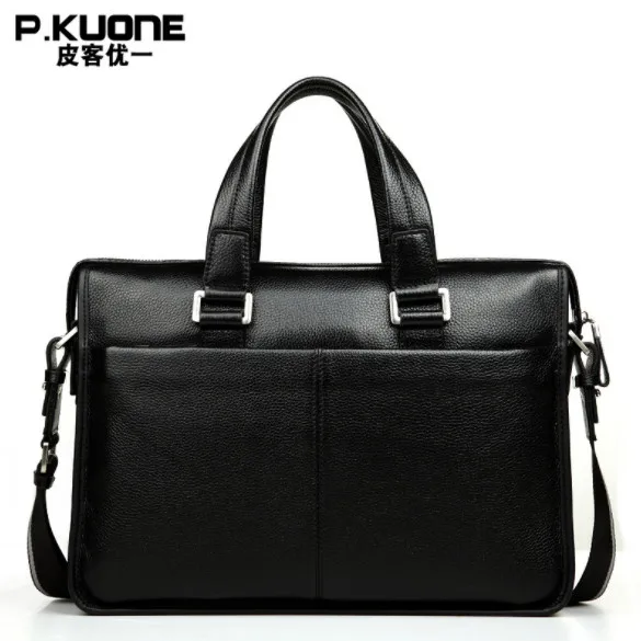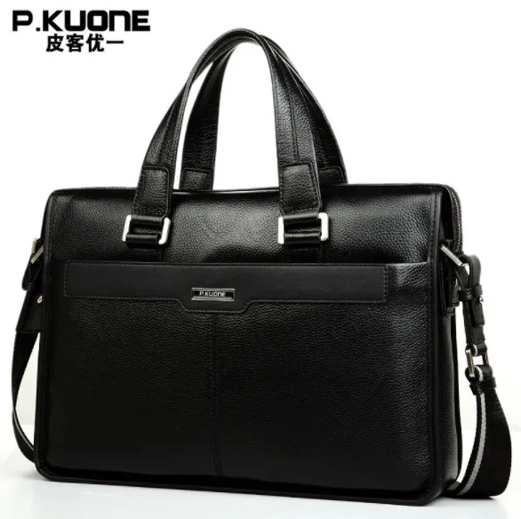 Special Offer P. KUONE luksusowe shining oil wax wołowej prawdziwej skóry mężczyzna teczki na ramię biznes torba na ramię na co dzień torba podróżna torba na ramię dla 15 cal notebook podkładka pod Discount 5% Today!
