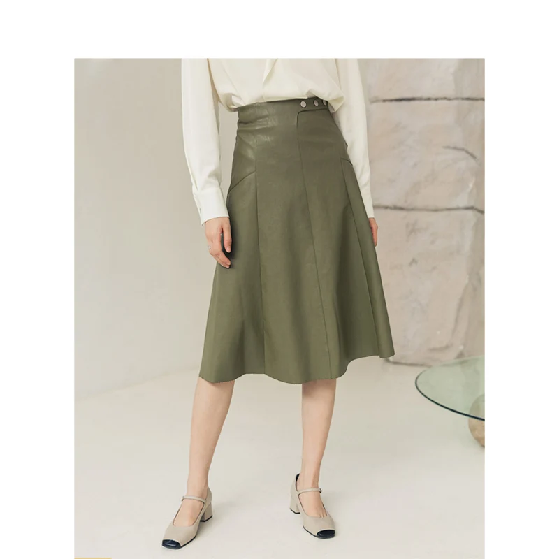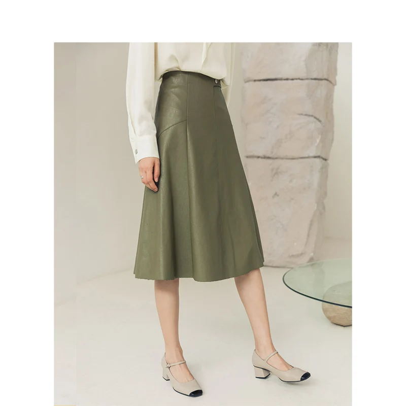 Special Offer INMAN 2020 wiosna biuro w stylu Retro nowy nabytek jednolity kolor PU skóra linia spódnica do kolan Discount 56% Today!